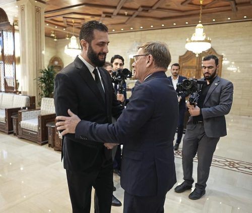Freundliche Begrüßung: Syriens Interimspräsident Ahmed al-Scharaa vergangene Woche mit Johann Wadephul. Die Reise des Außenministers wirkt nach. © Brandt/dpa