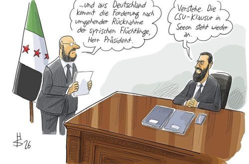 Mittlerweile weltbekanntes Ereignis im internationalen Politprogramm. © Zeichnung: Sakurai