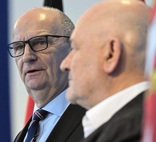 Dietmar Woidke (l.) und sein parteiloser Finanzminister Robert Crumbach. © AFP