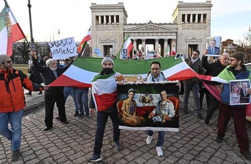 Am Münchner Königsplatz: Exil-Iraner und Bayern zeigen ihre Solidarität mit den Demonstranten in der Ferne. © Martin Hangen