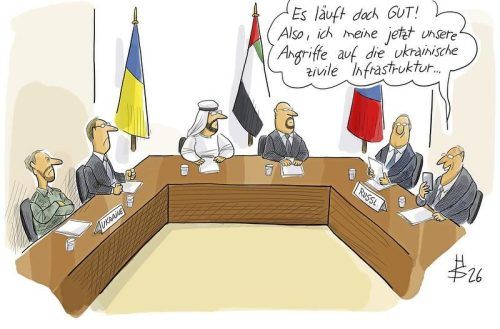 4. Februar 2026 19:30 16. Februar 2026 12:09 Schriftgröße S M L XL Zeilenabstand S M L 5. Februar 2026 Fortschritte bei den Gesprächen in Abu Dhabi? © Zeichnung: Sakurai Dieser Artikel (ID: 2443103) ist am 05.02.2026 in folgenden Ausgaben erschienen: Mühldorfer Anzeiger (Seite 2), Wasserburger Zeitung (Seite 2), Mangfall-Bote (Seite 2), Chiemgau-Zeitung (Seite 2), Oberbayerisches Volksblatt (Seite 2), Waldkraiburger Nachrichten (Seite 2), Neumarkter Anzeiger (Seite 2). zurück drucken