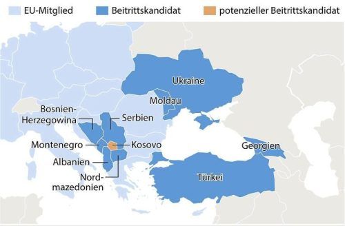 Wer wird der nächste Mitgliedstaat? Insgesamt gibt es neun Beitrittskandidaten – auch Kosovo hat den Status beantragt, aber noch nicht erhalten. © dpa