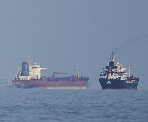 Öltanker liegen in der Straße von Hormus. © Qadri/dpa