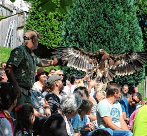 Zehn Jahre Falknerei in Hohenaschau: „Das heißt auch, dass wir seit zehn Jahren hier unter der Burg von Hohenaschau versuchen, den Besuchern das immaterielle Kulturerbe der Menschheit nahezubringen und zu zeigen, wie mit Hilfe des Falken und Adlers gejagt wird“, sagt Hannes Lenhart, der Falkner von