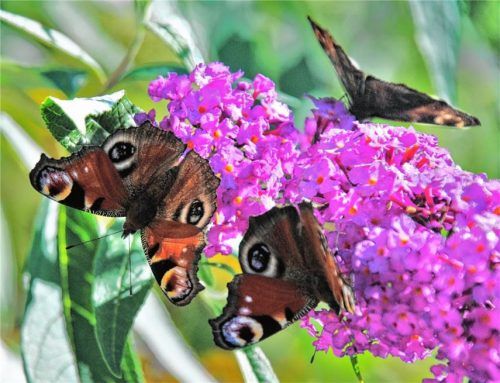 Dicht umlagert – vor allem von „Pfauenaugen“ – war gestern mittag noch einmal der Schmetterlingsstrauch in einem Garten in Baierbach am Simssee. Das Tagpfauenauge ist einer der bekanntesten heimischen Schmetterlinge und zusammen mit dem Kleinen Fuchs auch einer der häufigsten. Der Sommerflieder, den