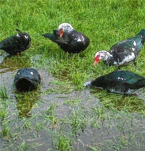 Zurzeit gibt es feuchte Wiesen – sehr zur Freude dieser freilaufenden Enten! Ohne Angst vor dem Fuchs genießt die Truppe die kurzzeitig vorhandenen Wasserflächen. Foto stm