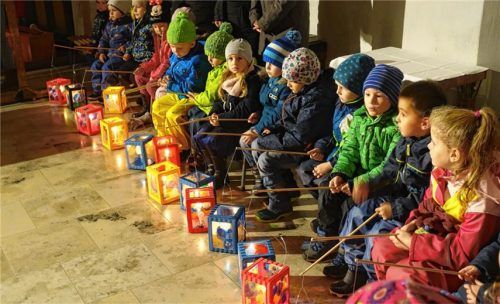 Trotz des nasskalten Wetters versammelten sich die Kinder der Bärenstube Stephanskirchen, um mit ihren Eltern gemeinsam St. Martin zu feiern. Nach der Kirche zogen alle Teilnehmer zusammen hinter dem Pferd des heiligen Martin zum Kindergarten. Dort angekommen waren alle durchnässt und freuten sich n