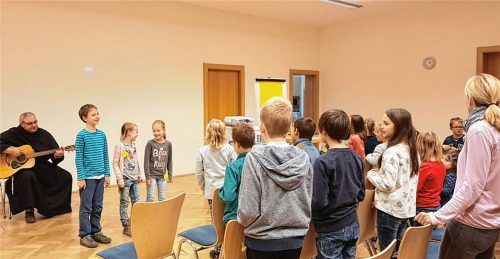 34 Mädchen und Buben der Grundschule Halfing haben sich jetzt zum Kinderbibeltag im Halfinger Pfarrheim getroffen und sind dem „heiligen Martin“ auf die Spur gegangen. So erfuhren die Kinder nach einem musikalischen Willkommensgruß von Pater Paul auf seiner Gitarre anhand eines Kurzfilms jede Menge