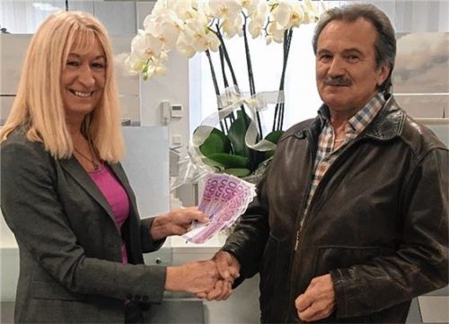 Kurz vor dem Adventsbeginn kam das Glück für Laszlo Lövei: Bei der November-Auslosung des Gewinnsparvereins entfiel der Gewinn in Höhe von 5000 Euro auf den Halfinger. Herzlich gratulierte Christine Krämer, Geschäftsstellenleiterin der Raiffeisenbank in Halfing, dem Gewinner.Foto re