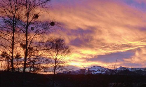 Wer am gestrigen Mittwoch früh aufgestanden ist, der wurde mit einem herrlichen Sonnenaufgang belohnt. Wie beispielsweise OVB-Leser Jürgen Bauer, der das Farbenspiel sofort im Bild festgehalten hat. Seine Aufnahme zeigt die Sonne bei Riedering mit Blick auf die Kampenwand, die langsam durch die dünn