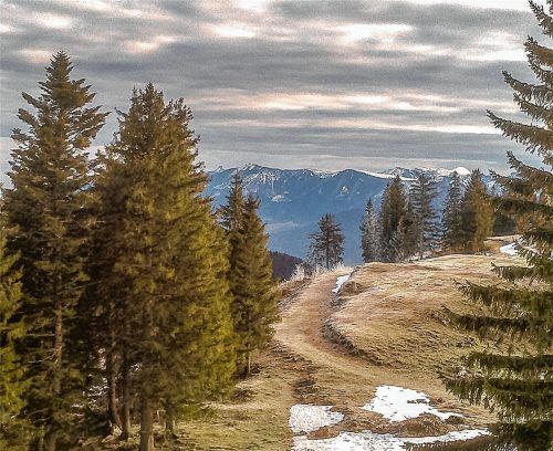 Einen besonderen Blick übers Inntal bietet dieses Bild auf die Hochries, über deren linke Schulter die Kampenwand lugt. Rechts im Bild, die weiße Pyramide, das ist der Geigelstein. Foto Stephan