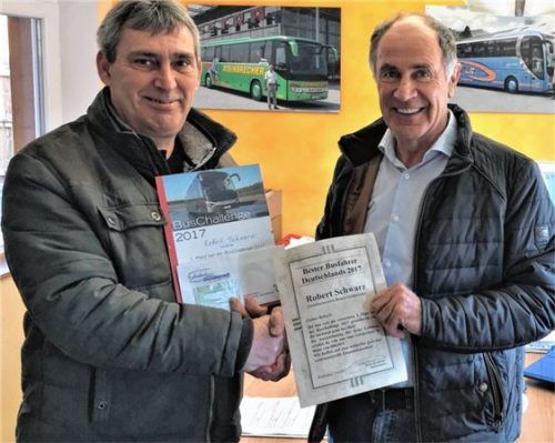 Bereits im November 2017 hat Busfahrer Robert Schwarz bei der von der Zeitschrift Omnibusrevue ausgelobten Bus-Challenge den ersten Platz gewonnen. In den verschiedensten Disziplinen verlangte der Wettbewerb einiges von dem Busfahrer ab. Ob Theorie oder Praxis, ob Geschicklichkeit oder Augenmaß, ob