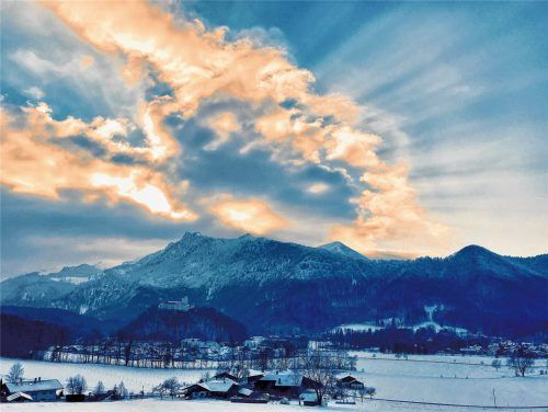 Dichte Wolkenbanner hingen in den vergangenen Tagen über dem Priental und nisteten sich dabei regelrecht zwischen den Bergspitzen ein. Doch plötzlich löste sich das Wolkenmeer auf und ermöglichte den Betrachtern einen freien Blick auf das Felsmassiv oberhalb des Schlosses Hohenaschau. Ein Farbenspie