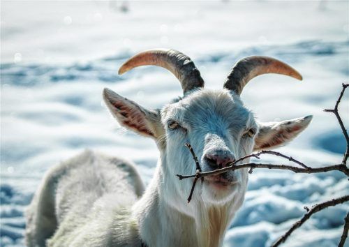 Diese „Schneeziege“ wurde im Arzmoos unter dem Wildalpjoch über Brannenburg entdeckt. Richtiger ist allerdings weiße (Haus-)Ziege im Schnee, denn die echten Schneeziegen sind Wildtiere und leben in den nordamerikanischen Gebirgsregionen. Foto Stephan