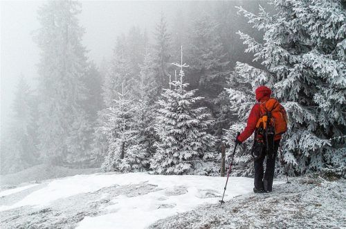 Das Wetter schlägt derzeit ziemliche Kapriolen. Schnee wird von Sonnenschein abgelöst, dann folgen wieder Nebel und Kälte. Gerade richtig für einen Ausflug in die Natur, vorausgesetzt, man hat sich entsprechend angezogen wie unsere Wanderin auf dem Bild. Frei nach dem Motto: Es gibt kein schlechtes