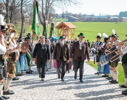 Bei schönstem Wetter feierte der Schützengau Chiemgau Prien in Pittenhart am gestrigen Sonntag seinen Gedenktag. Unter den Klägen der Musikkapelle Obing zogen die Schützen aus fast 30 Gau-Vereinen mit ihren Königen sowie die Ortsvereine mit ihren Fahnen zum Kriegerdenkmal. Dort legte Erster Gauschüt