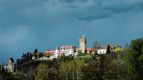 Diese dunkle Gewitterwand baute sich am Montagabend hinter Neubeuern mit Schloss und Kirche auf. Doch der befürchtete Starkregen mit Blitzen und Donner blieb aus.Foto stephan