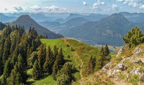 Blick von der Wasserwand über den Hauptgipfel des Heubergs hinweg auf die engste Stelle des bayerischen Inntals bei Kirnstein zwischen Kranzhorn (links) und Wildbarren (rechts).Foto Stephan