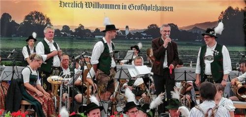 Die Sparkassenstiftung Zukunft für den Landkreis Rosenheim hat die Anschaffungskosten für ein neues Schlagzeug übernommen. Im Rahmen des 140. Jubiläums der Musikkapelle Großholzhausen übergab in Vertretung für die Stiftung Stephan Donderer, Gebietsdirektor der Sparkasse Rosenheim-Bad Aibling (Zweite