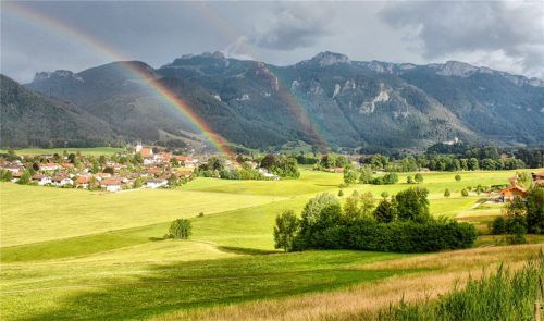 Nach Regenschauern kehrt wieder Ruhe ein und der Himmel schickt dabei manchmal ein leuchtendes Zeichen, einen farbenfrohen Regenbogen. Wie heißt es in der irischen Mythologie so schön: Am Ende des Regenbogens ist ein Goldschatz versteckt. Wie diese Aufnahme hier über Aschau zeigt, ist der größte Sch