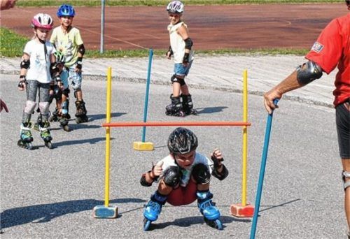 Diplom-Sportlehrer Franz Sandor nahm eine Gruppe von Inlineskatern beim Riederinger Ferienprogramm unter die Fittiche: Es wurde Vorwärtslaufen und Bremsen geübt. Zudem gab’s einen anspruchsvollen Parcours, bei dem die Kinder auch mal tief in die Hocke gehen mussten.Foto Niessen