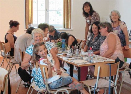 Zum sechsten Mal veranstaltete Brigitte Kalckbrenner in Sachrang Porzellanmalen für einen wohltätigen Zweck. Gut zwei Dutzend Laien-Porzellanmaler, darunter auch Aschaus Dritte Bürgermeisterin Monika Schmid, bemalten eine Keramikfliese und anderes Porzellan unter Kalckbrenners Anleitung. Kalckbrenne