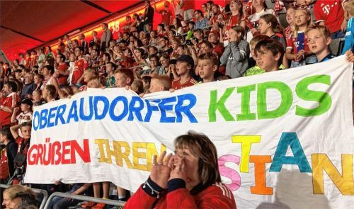 Eine Abordnung Oberaudorfer Kinder und Jugendlicher durfte am Dienstagabend zum Abschiedsspiel ihres Idols Bastian Schweinsteiger aus Oberaudorf in die Allianz-Arena. Dabei konnten sie sogar ein Tor ihres Idols bejubeln.Foto re
