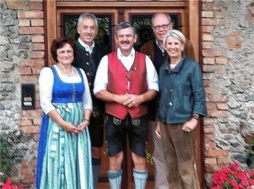 Seit nunmehr einem Vierteljahrhundert verbringen Dr. Simone und Michael Emmelius (rechts) aus Mainz ihre Sommerferien auf dem Gschwingerhof in Obermoosen in der Gemeinde Riedering. Diese 25 Jahre lange Verbundenheit zur Urlaubsregion Simssee wurde im September auf dem Gschwingerhof von Andreas Aßbic
