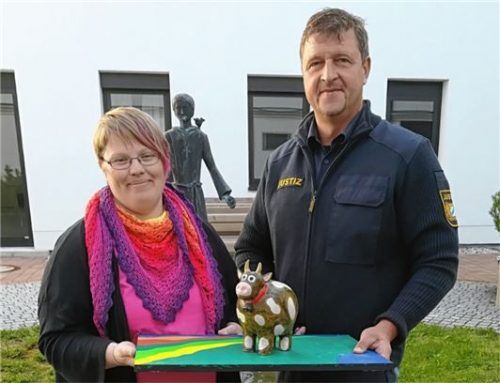 Tierisches Geschenk: Stefan Kollai überreicht die Spendenkuh an Sabrina Pollinger. Foto re