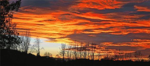 Die untergehende Sonne ist immer wieder gut für ein abendliches Himmelsschauspiel. Dieses glühende Farbenspektakel hat Hansjörg Reck aus Riedering eingefangen.Foto reck