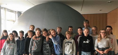Was wie ein Cyber-Iglu aussieht, entpuppt sich als mobiles Planetarium, mit dem Schüler der 7. Jahrgangsstufe und der Astrophysik-Kurse der Qualifikationsphase des Gymnasiums Raubling auf Initiative von Peter Gottfriedsen am helllichten Tag den Sternenhimmel unter fachkundiger Anleitung von Andreas