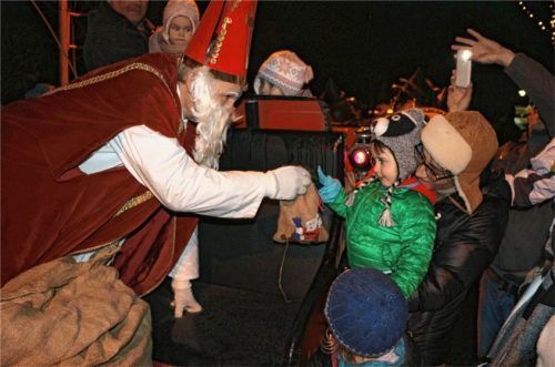 In Aschau ist man wasserfest: Trotz Regens kamen auch heuer wieder zahlreiche Besucher, als es hieß „Licht aus – Stimmung an“ und sich die Hauptstraße zwischen Bahnhof und Rathaus in eine Fußgängerzone verwandelte. Dazwischen fuhr immer wieder der Nikolaus mit dem Pferdegespann durch den Ort. Für di