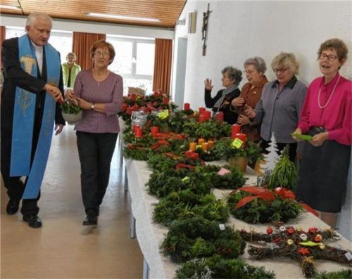 Viele fleißige Hände waren am Werk gewesen. Und so konnte Pfarrer Drago Curic zahlreiche Adventskränze und -gestecke, die die Damen der Katholischen Frauengemeinschaft Großkarolinenfeld gefertigt hatten, segnen. Das reichhaltige Buffet mit selbstgebackenen Kuchen und Plätzchen war von den zahlreiche