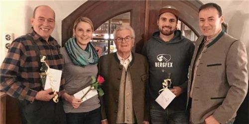 Beim Preisschafkopfen des Veteranenvereins Törwang-Grainbach im Gasthof Maurer gewann nach einigen Jahren wieder ein Samerberger: Michael Wiesholzer (links) aus Grainbach siegte vor Hannes Leitner (Zweiter von rechts). Lisa Dräxl erhielt den Damenpreis. Michael Irger (rechts), Vorsitzender des Veter
