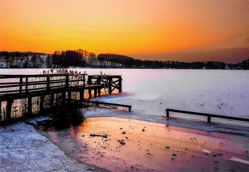 Wer die zarte Eisfläche am Tinninger See zwischen Riedering und Lauterbach bei Sonnenuntergang so betrachtet, könnte auf die Idee kommen, mit Schlittschuhen eine Runde auf dem Gewässer zu drehen. Eine lebensgefährliche Idee: Denn das Eis ist keineswegs tragfähig – und wird es aufgrund der in den kom