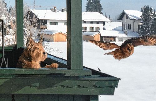 öffnen. Da kann man schon mal einen gefiederten Überraschungsbesuch, wie hier in Aschau, auf dem Balkon begrüßen. Während Christa Clarin gleich die Kamera zückte, musste natürlic