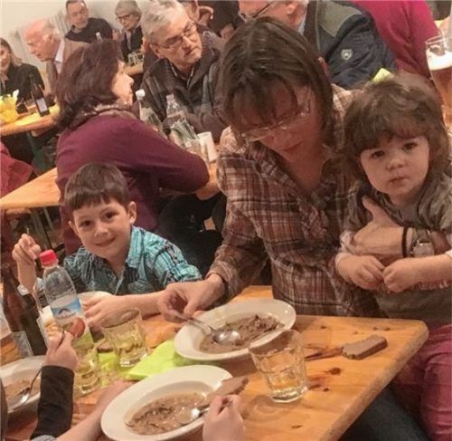 Das Suppen-Angebot beim Fastensuppenessen in der Alten Schule Sachrang konnte sich sehen lassen. Erwachsene und Kinder ließen sich für den guten Zweck die vielfältigen, hausgemachten Suppen schmecken, dazu das Simmerl-Bergbauernbrot. Graf Saurma und Pfarrer Overmeyer informierten, dass das marode Sa