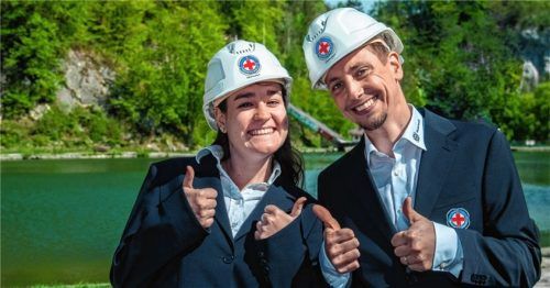 Philipp Streifeneder, Vorsitzender der Wasserwacht Oberaudorf und Jugendleiterin Daniela Grundbacher, haben gut strahlen: Dieser Tage konnte der Grundstein für die neue Wasserwachthütte am Luegsteinsee gelegt werden. „Vergelt’s Gott“ sagt Streifeneder allen Spendern, aber auch der Gemeinde und dem K