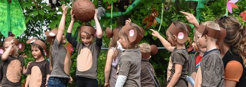 „Wer hat die Kokosnuss, wer hat die Kokosnuss, wer hat die Kokosnuss geklahahaut?“ Eine ganze Affenbande, die Elefantenpolizei und ein aufregendes Dschungeltreiben mitten in Raubling. Was war denn da los im rappelvollen Gelände des Kindergartens „Pusteblume“? Mogli, Balu, sowie das gesamte Gefolge m