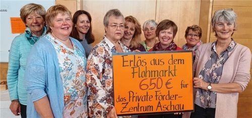 Die Frauenbewegung Eggstätt veranstaltete einen Flohmarkt für soziale Zwecke für die Förderschule in Aschau, an die der Betrag von 650 Euro geht. Bei der Übergabe (von links): Rosi Patzke, Maria Estner, Sabine Bliemel, Susanne Kremer, Lisa Erb, Marille Hilger, Stephanie Riedl, Jeannine Huger und Ann