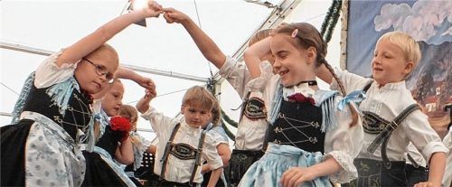 Großes Programm im Festzelt des Trachtenvereins Simssee Süd Stephanskirchen: Die Jugendblaskapelle spielte schneidig zum Frühschoppen auf, die jüngsten Trachtler des Vereins zeigten Volkstänze (Bild). Ein voller Erfolg war des Weiteren der Gebietsjugendtanz mit der Berg und Doi Muse des Gebietes Sim