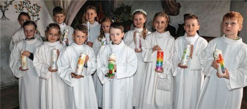 Sieben Mädchen und fünf Buben feierten zusammen mit der Frasdorfer Pfarrgemeinde ihre Erstkommunion in der festlich geschmückten Pfarrkirche Sankt Margaretha in Frasdorf. Feierlich holte sie Pfarrer Hermann Overmeyer mit den Ministranten in der Friedhofskapelle ab und geleitete sie an ihrem großen T