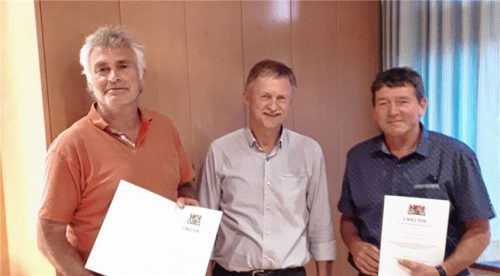 Seit 1996, also nunmehr vier Amtsperioden, sind Paul Arnold, Hans Murner und Hermann Rieplhuber Mitglieder des Gemeinderats Höslwang. Bürgermeister Matthias Maier (Mitte) würdigte das langjährige Wirken der drei Gemeinderäte. Nicht gewählt zu werden, sondern vor allem sich auch wiederwählen lassen,