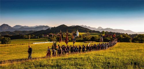 Das Patrozinium „St. Peter und St. Paul“ konnte heuer in Steinkirchen auf dem Samerberg bei schönstem Sommerabend gefeiert werden. Nach dem Gottesdienst mit Pfarrer Robert Baumgartner und Diakon Günter Schmitzberger in der Kirche führte die Prozession hinauf nach Oberleiten. Mit dabei waren die kirc