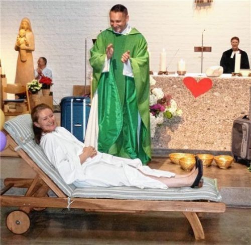 Acht Jahre lang war Pastoralreferentin Monika Eichinger im Pfarrverband Stephanskirchen tätig, nun wurde sie von der Gemeinde verabschiedet. Von Pfarrer Fabian Orsetti bekam sie als Abschiedsgeschenk eine Gartenliege überreicht. Besonders die Kinder- und Familienarbeit ist der engagierten Pastoralre