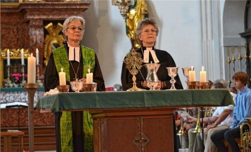 Wegen der schlechten Witterungslage musste der traditionelle Berggottesdienst auf der Steinlingalm kurzfristig in die katholische Pfarrkirche in Aschau verlegt werden. Der Gottesdienst stand unter dem Zeichen des Abschieds von Regionalbischöfin Dr.Susanne Breit-Keßler (rechts) und Dekanin Hanna Wirt