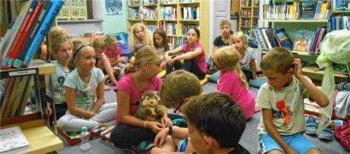 Bei einer Bücherrallye mussten die Kinder Rätsel lösen und in der Bücherei gezielt nach Büchern suchen. Danach lasen die Büchereimitarbeiterinnen die Geschichte von „Latte Igel reist zu den Lofoten“ vor, bevor eine N