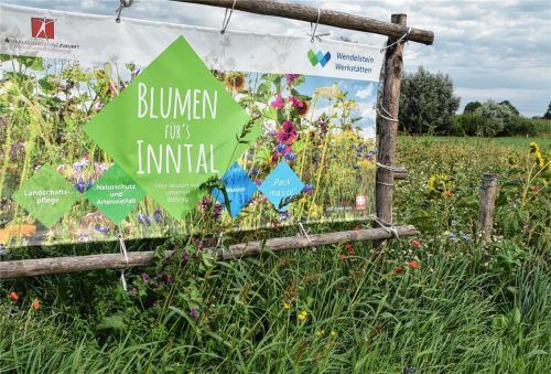 „Blumen für’s Inntal“ fordern grammatikalisch falsch, aber mit gutem Beispiel vorangehend, die Wendelstein Werkstätten auf großen Tafeln zwischen Pfraundorf und den Panger Feldern. Hoffentlich sät sich viel der bunten Pracht selber aus – dann grünt und blüht es auch im nächsten Jahr wieder im Inntal