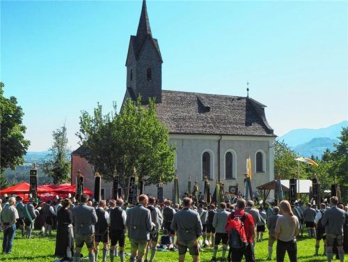 Gauvorsitzender Georg Schinnagl konnte zahlreiche Trachtler bei der Gauwallfahrt des bayerischen Inngau-Trachtenverbandes zur Kirche Mariahilf und Sankt Johann Nepomuk auf der Schwarzlack begrüßen. Pfarrer Christoph Rudolph aus dem Pfarrverband Neubeuern-Nußdorf gestaltete den Gottesdienst, musikali