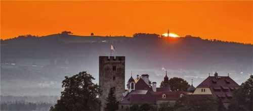 Dass die Sonne hinter dem Schloss der ehemaligen „Innschifffahrtsmetropole“ Neubeuern auf- oder untergeht, erkennt jeder Inntaler. Aber was ist das Bauwerk am Horizont, direkt im Rest der Sonnenscheibe? Handelt es sich um einen Sendemast, eine Moschee, ein Beobachtungsturm, ein Windrad?Foto Stephan